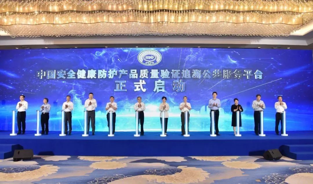 与会领导共同启动中国安全健康防护产品质量验证追溯公共服务平台。