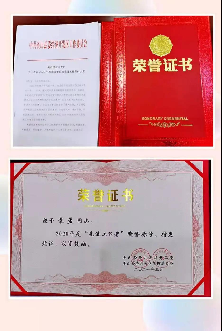为总结成绩、再鼓干劲,英山开发区党工委、管委会决定对经济开发区2020年度先进单位及先进工作者给予通报表彰。湖北天鸣鞋业办公室主任袁孟、财务主管徐敏荣获开发区“先进工作者”称号并领取荣誉证书。